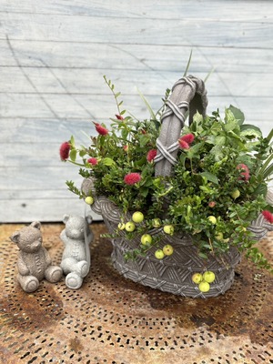 寄せ植えのご紹介(^^) クランベリー、キャットテール、ヘンリーツタ、ミスカンサス